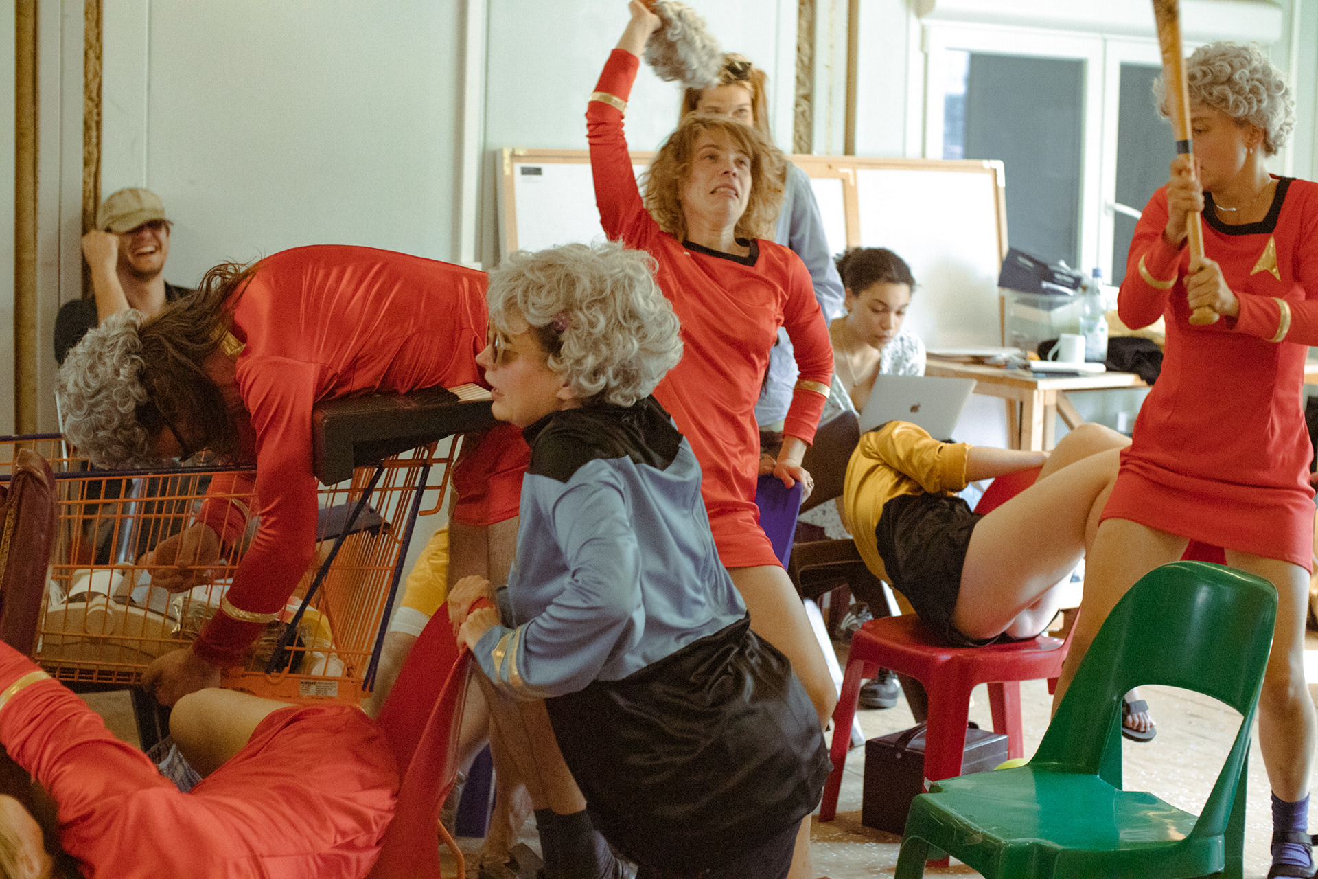 Text and Direction: Hannah Rumstedt, Assistant Director: Pearl Graw, Production Management: David Heim, PR: Vincent Kadus, Dramaturgy: Julius Böhm, Live-Camera: Katharina Grählert, Video- & Sound Technician: Jakob Gerber, Boom Operator: Jonathan Frisch, Lights: Christoph Reinhardt , Costume: Franziska Müller, Stage: NIE Theater